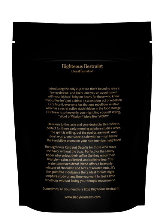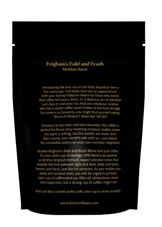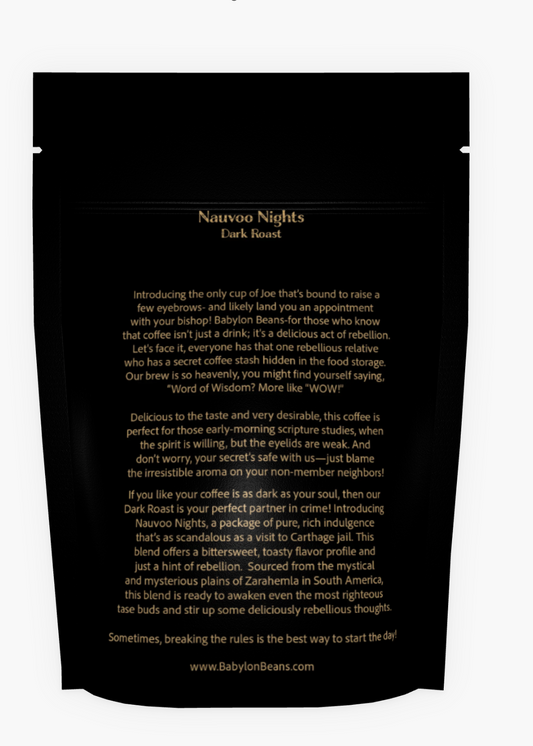 Introducing the only cup of Joe that’s bound to raise a few eyebrows- and likely land you an appointment with your bishop! Babylon Beans-for those who know that coffee isn’t just a drink; it’s a delicious act of rebellion. Let's face it, everyone has that one rebellious relative who has a secret coffee stash hidden in the food storage. Our brew is so heavenly, you might find yourself saying, “Word of Wisdom? More like “WOW!” Delicious to the taste and very desirable, this coffee is perfect for those early-morning scripture studies, when the spirit is willing, but the eyelids are weak. And don’t worry, your secret’s safe with us—just blame the irresistible aroma on your non-member neighbors! More blends and favorite historical characters to be added soon!